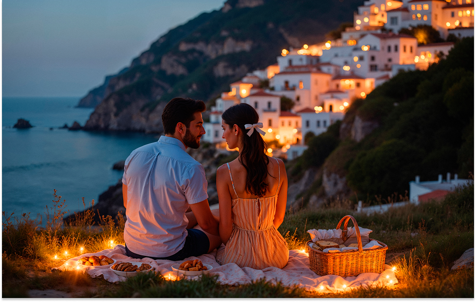Los espectaculares acantilados, los coloridos pueblos y las aguas azules de la costa de Amalfi crean un entorno idílico. Ya sea con vistas a Positano desde una terraza en un acantilado o en una cala escondida en Ravello, la belleza de esta región hará que tu propuesta sea inolvidable.