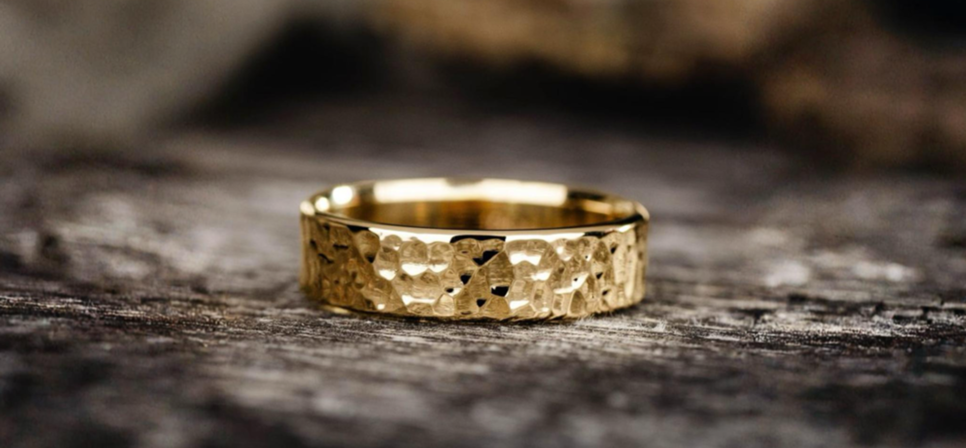 La textura es la principal forma en que las alianzas de boda para hombres expresan individualidad este año. Los acabados martillados, cepillados con alambre y arenados añaden profundidad que cambia a medida que el anillo capta la luz.